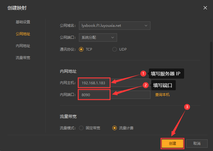 10,在内网地址填写你的服务器 IP 和 Beszel 端口 8090 后点击【创建】按钮,如下图。