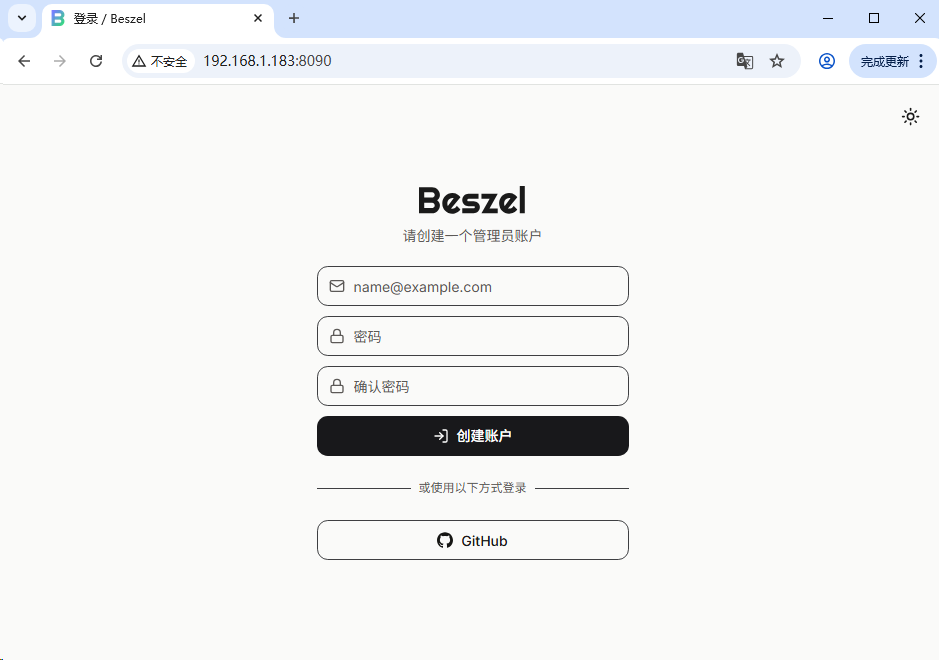 5,打开浏览器访问地址 http://你的服务器 IP:8090 ,就能看到你部署的 Beszel 登录界面了。