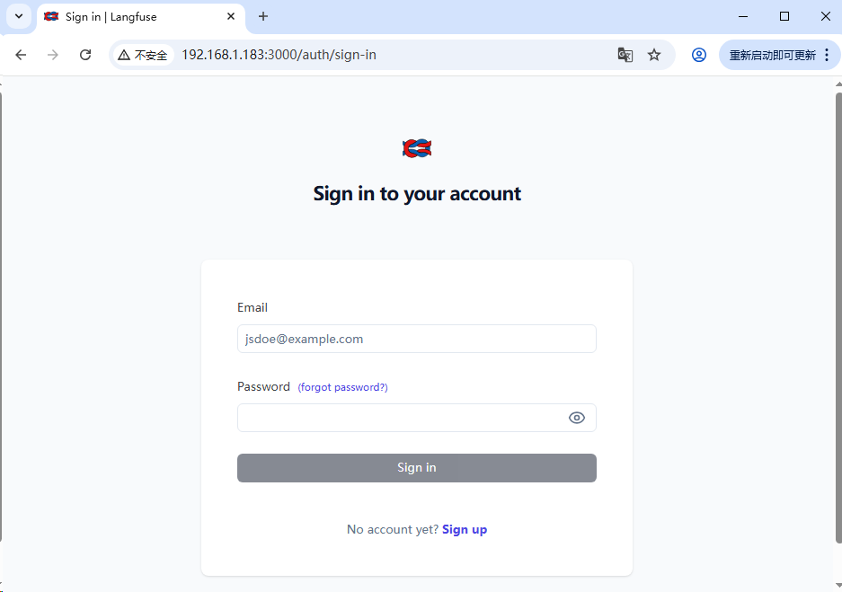7,打开浏览器访问地址 http://你的服务器 IP:3000 ,就能看到你部署的 Langfuse 登录界面了。