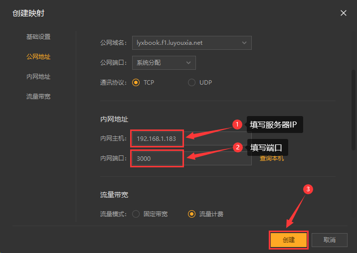 10,在内网地址填写你的服务器 IP 和 Langfuse 端口 3000 后点击【创建】按钮,如下图。